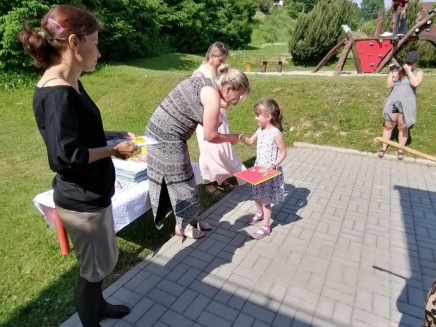 Ve středu 16.6. byla v MŠ pořádána zahradní slavnost, při které bylo nejdůležitější slavnostně pasovat naše předškoláčky na budoucí prvňáčky základní školy. Děti si pro své mladší kamarády připravily básničky a taneček, aby všem ukázaly, že jsou již připravení a že vše zvládnou. Paní ředitelka děti symbolicky pasovala na školáky a třídní paní učitelky dětem popřály hodně štěstí na další cestě v ZŠ. Následovala diskotéka a oslava plná dobrot a šampaňského.